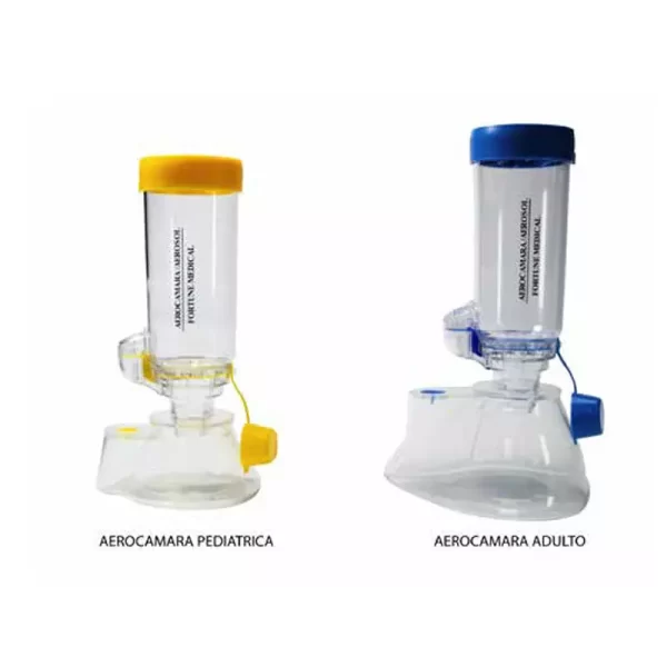 Aerocámara o Inhalocámara diseñado para la administración optima en aerosol; es un equipo