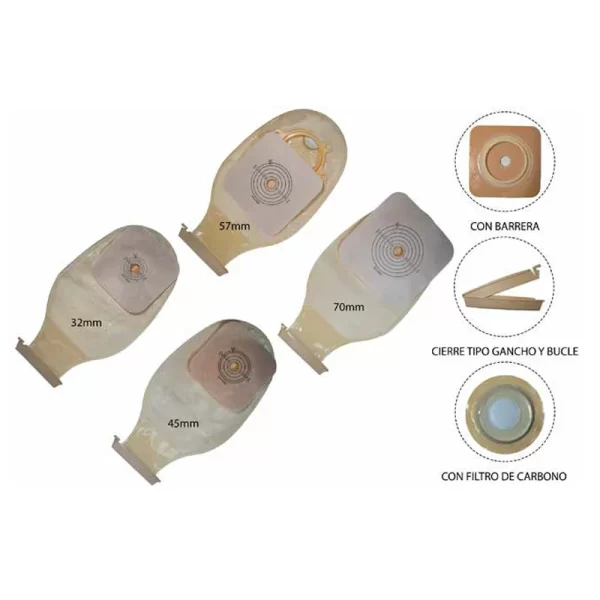 Bolsa de colostomía es una bolsa drenable con aro para uso de colostomías o ileostomías, las