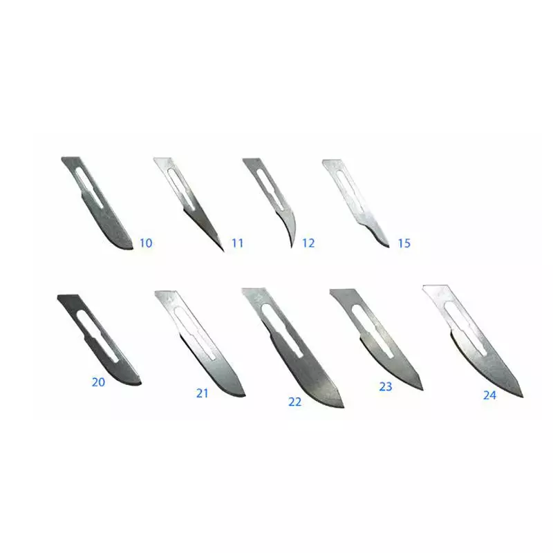 Las hojas de bisturí se utilizan para realizar cortes precisos en procedimientos de cirugía. Características: Fabricado de acero inoxidable – Envoltura herméticamente cerrado de aluminio con abre fácil – Vienen de diferentes formas para dar mas precisión al corte que el cirujano desea – Hojas extremadamente filosas – A cada mango se le asigna una hoja de bisturí diferente como: Mango # 4 Hojas # 20; # 22; # 23 y # 24 – Mango # 3 Mango # 7 Hojas # 10; # 11; # 12 y # 15 Un solo usoVarias medidas: # 10; # 11; # 12; # 15; # 20; # 22; # 23 y # 24 – Producto atoxico Esterilización: Producto esterilizado por Rayos Gama (2,5 M Rads) Certificaciones: Registro Sanitario – ISO 13485 – CE Certificado de conformidad Empaque: Caja x 100 unidades – Caja master por 5000 unidades Precauciones: No utilizar el producto si el empaque esta abierto – No re estilizar ni reutilizar – Debe ser usado por personal capacitado – Almacenar en un ambiente seco